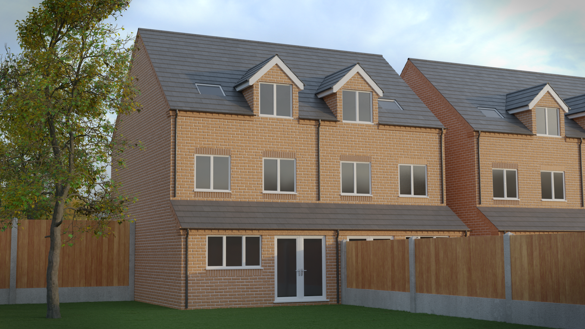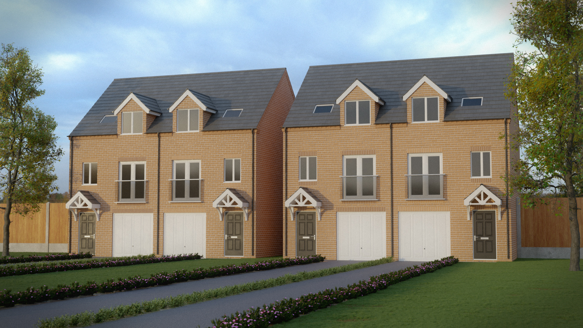I was hired by a local construction company to create an architectural visualisation of four new houses to use as marketing material for potential customers.